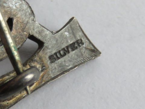A HM silver monogram brooch, together with two silver monogram brooches, a 925 silver and marcasite bar brooch and two others. Six items.