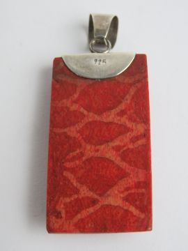 A silver mounted pendant in red with filigree design upon, stamped 925, 5.3cm inc bale.