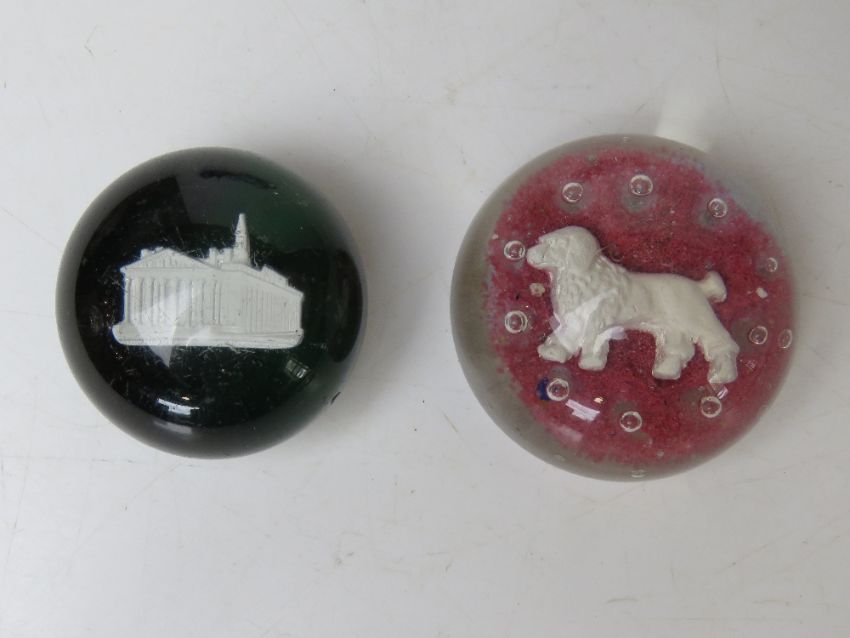 Five Caithness glass paperweights being 'Cauldron', 'Limelight', 'On the Wings of a Dove', 'Moondrop' and the other in pinks and purples. Together with other assorted glass paperweights. Eight items.