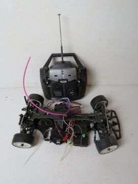 The chassis and wheels for a remote controlled vehicle, together with the controller.