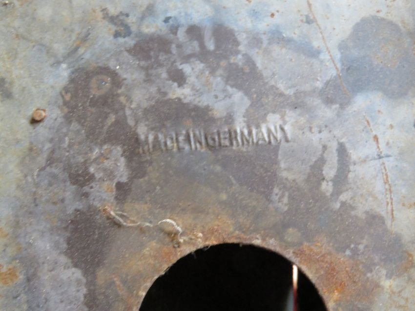 A Mamod type live steam engine casing inc two flywheels, no engine. Base measuring approx. 28cm wide and marked 'Made in Germany'.