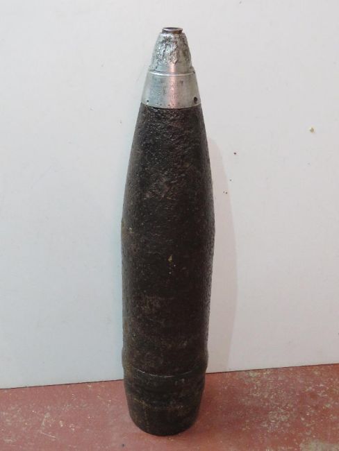 An inert WWII German Kwk40 HE projectile with fuse, KLAZ23 umg fuse with myx makers mark and dated 43. Approx. 35cm tall.