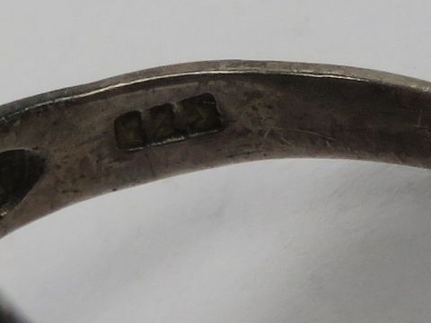 A silver and carnelian ring having pierced pattern in oval frame, stamped 925, size M-N.
