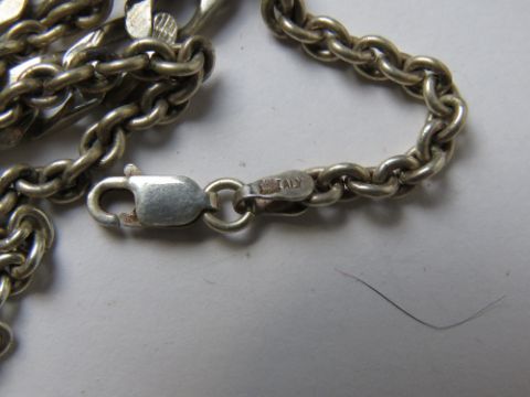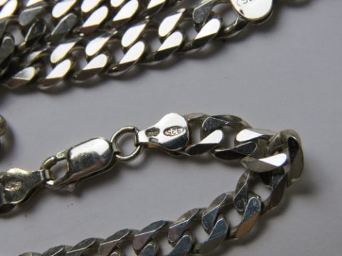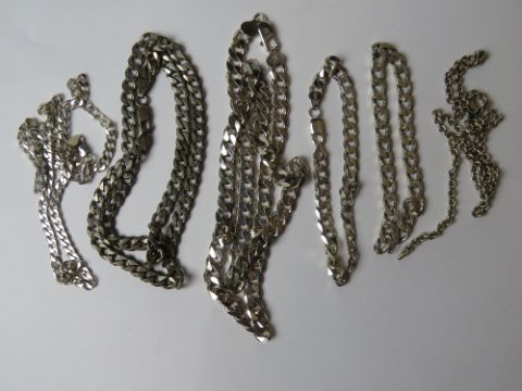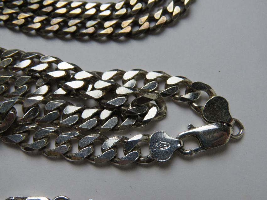 A quantity of silver and white metal heavy chains, some hallmarked some unmarked or stamped 925. Hallmarked items weighing total 82.2g