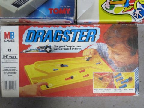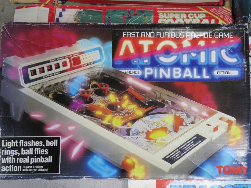 Vintage games inc Super Cup Football by Tommy, Atomic Pinball by Tommy, Twister, Dragster and an RC Ocean Explorer.