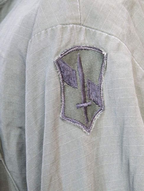A US Army olive green tropical jacket, size SMALL/SHORT.