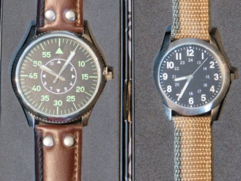 Two EAGLEMOSS Military Quartz Analogue Vintage gents watches, being Eaglemoss the aviator Luftwaffe German pilot 1940 WWII and EAGLEMOSS 1950'S British RAF.
