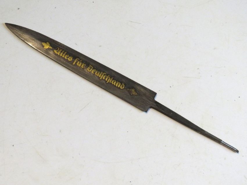 A German Damascus blade with gold writing.