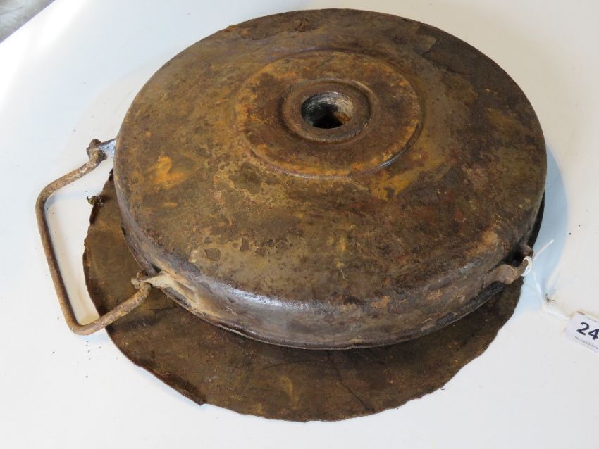 A WWII German Afrika Korp Tellermine, in relic condition with original Afrika Korp paint.