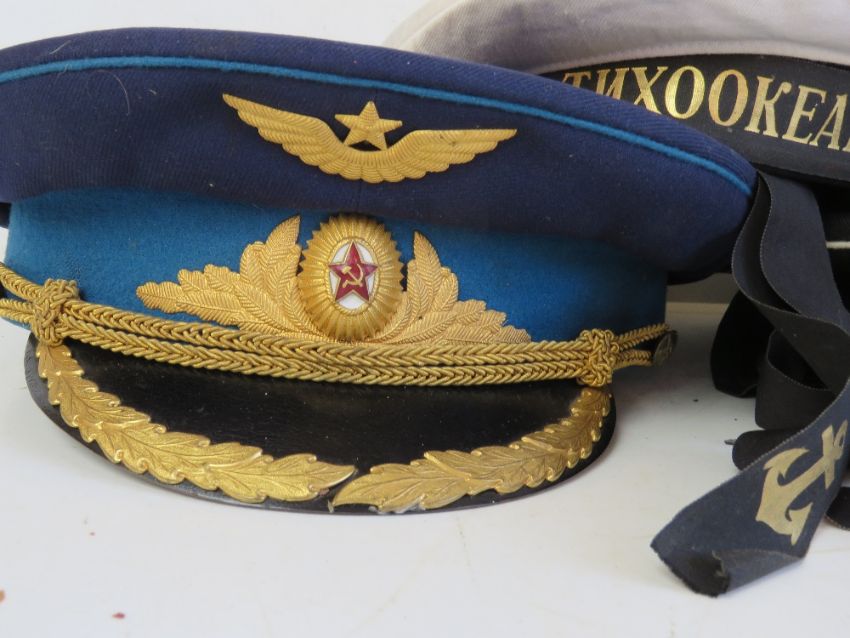 A Soviet Officers Airforce Cap size 58, a Soviet Northern fleet sailors cap size 54 and a Soviet Pacific fleet sailors cap size 55.