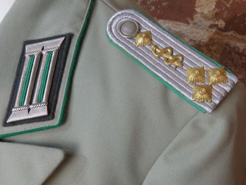 An East German Captains Border Troop Grenztruppen DDR Tunic and trousers with the NVA medal.