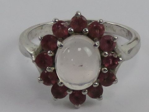 A contemporary silver pink floral cluster ring, stamped 925, size R-S.