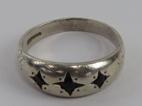 A HM silver three stone gypsy ring, hallmarked Birmingham, size O.
