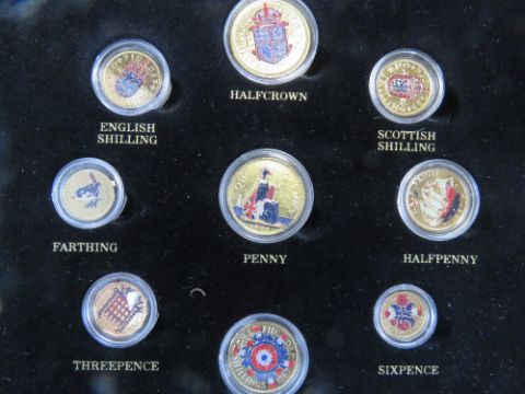 The London Mint 'Farewell to some of our National Symbols' coin collection in display case.