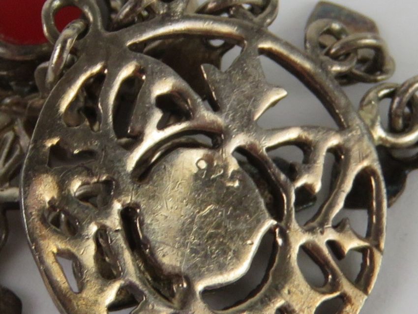 A pair of silver and red enamel Boho style earrings, stamped 925.