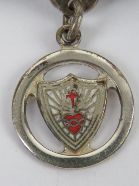 A HM silver Sacred Heart enamelled brooch, 3cm in length.