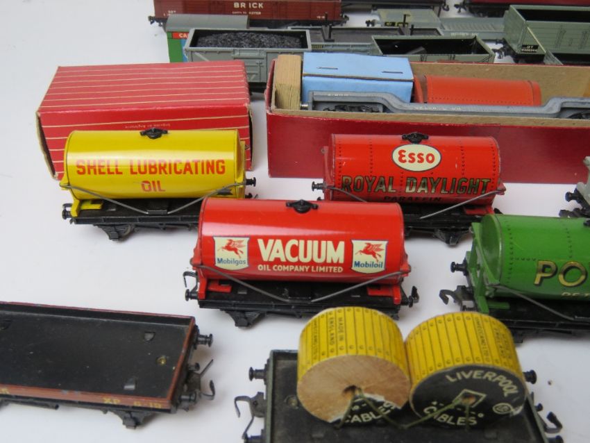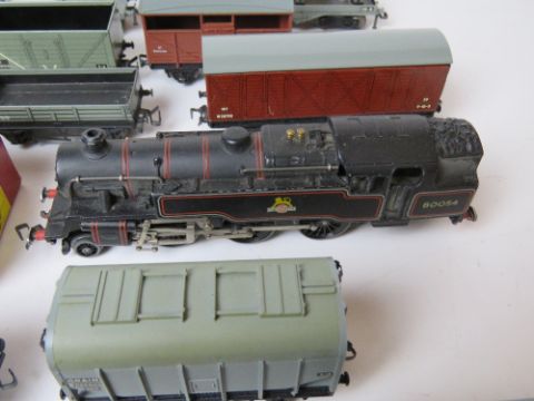 A quantity of Hornby Dublo carriages and wagon inc six metal fuel wagons inc Esso, Shell and Mobil Gas/Mobil Oil. Also a British Railways locomotive 80054 etc.