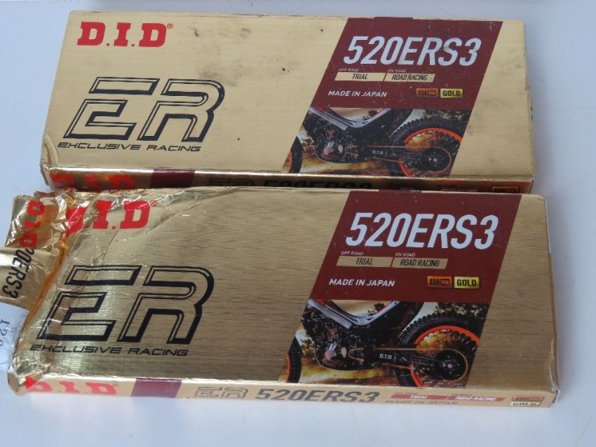 Two boxed DID ER Exclusive Racing 520ERS3 motorbike chains, one box a/f.