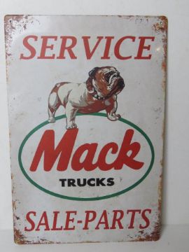 A contemporary metal garage Mack Trucks advertising sign, 30 x 20cm.