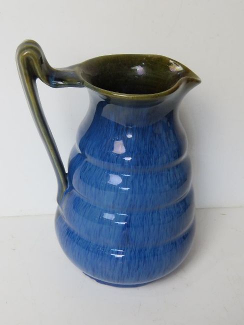 A Denby ware blue and green glazed jug standing 18.5cm high.