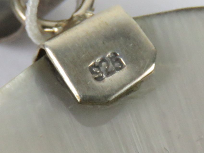 A silver and mother of pearl pendant, stamped 925, 3.5cm dia.