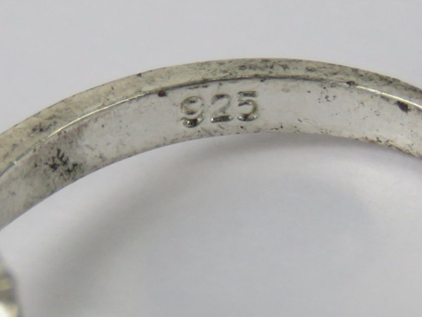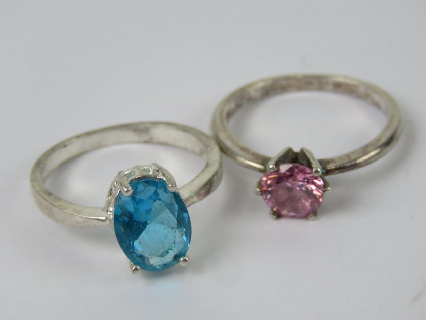 Two silver single stone rings, each stamped 925, size P-Q.