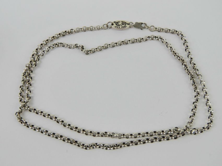 A silver chain, stamped 925 and dated 2001 with makers mark, 64cm in length.