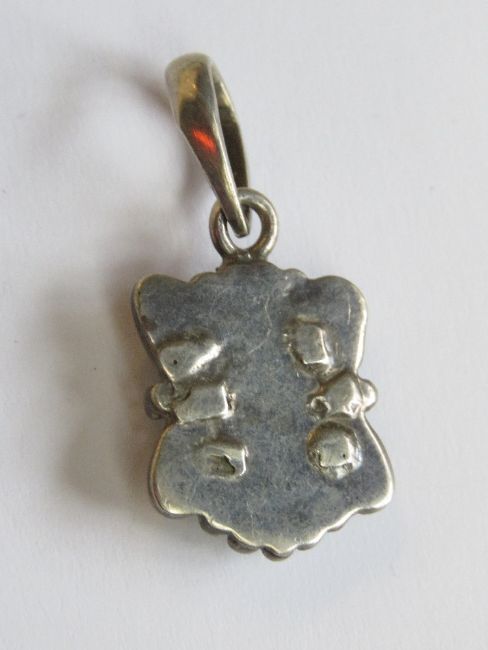 A Native American style white metal and turquoise pendant, no apparent hallmarks, 2.5cm inc bale.