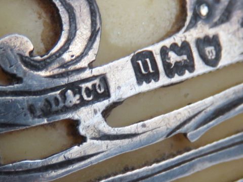 Two napkin rings; one horn napkin ring with HM silver shield shaped cabachon bearing the letter D, the other ivorex and having applied and pierced HM silver cypher upon.