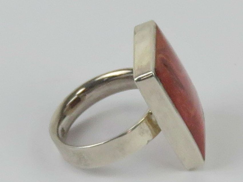 A contemporary silver and faux coral ring, stamped 925, size M.