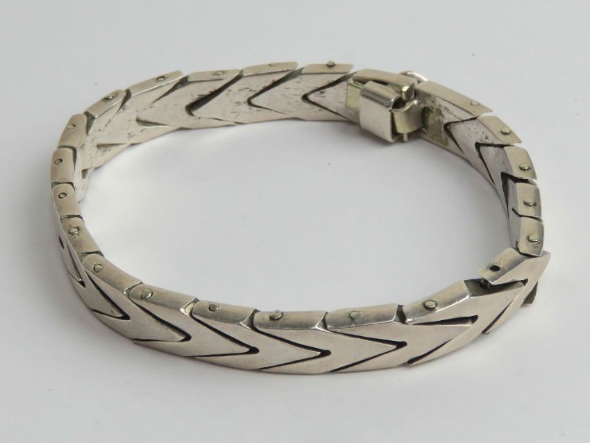 A heavy biker style articulated bracelet, stamped 925, 42.4g.
