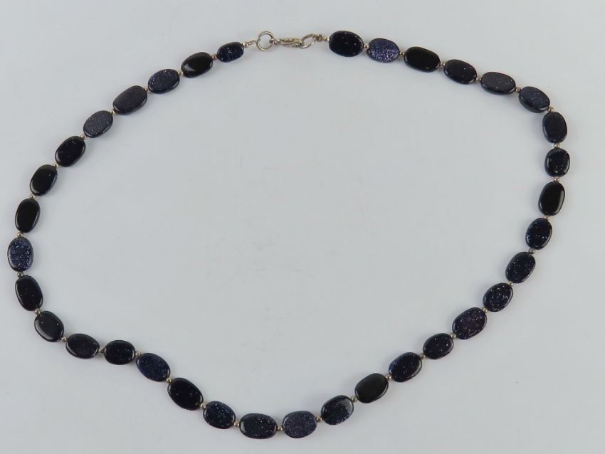 A blue goldstone beaded necklace with silver clasp stamped 925 approx 42cm in length.