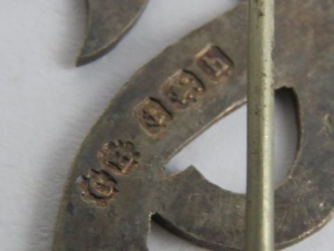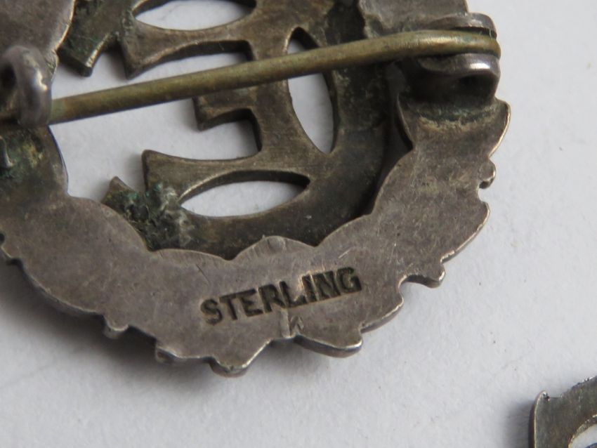 A HM silver monogram brooch, together with two silver monogram brooches, a 925 silver and marcasite bar brooch and two others. Six items.