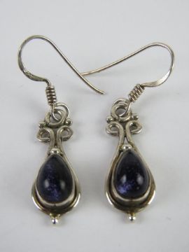 A pair of silver and blue goldstone earrings, stamped 925. In presentation box.