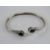 A silver and amethyst bangle, stamped 925 and having oval cabachon to each terminal.
