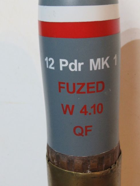 An inert WWI British 12pr shell, case dated 1903, head having been repainted.