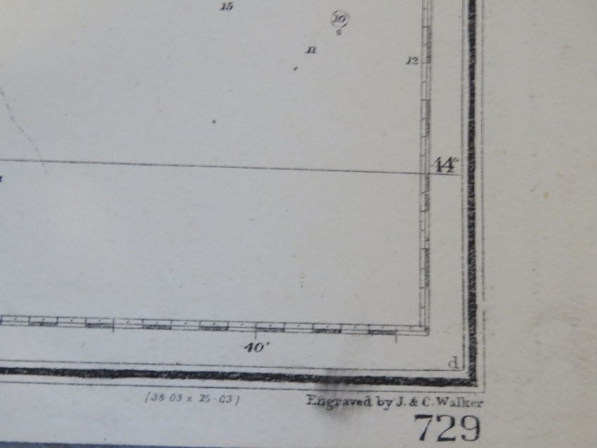 Navigational chart; engraved by J & C Walker, new edition published 1919, being British North America Nova Scotia S.E. Coast Sambro I to C. Canso, compiled from surveys of Captains Bayfield and Comr Orlebar, R.N., measuring approx 103 x 69cm.