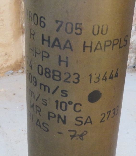 An inert WWII German 10.5cm 32st Illumination shell dated 1941 and having WWII German marks and stencilling upon. Fuse dated 1940 and bears WWII German markings.