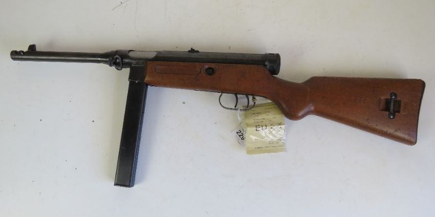 A deactivated Beretta Mod. 38/44 smooth barrel sub machine gun. Latest EU Spec, with moving metal dummy bolt (under spring pressure), moving triggers, safety and removable magazine. With certificate.