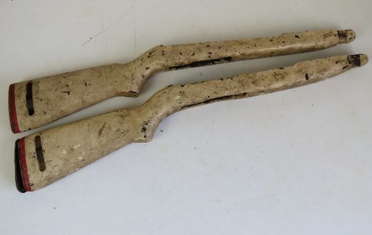 Two WWII M1 Carbine stocks (white painted), both with butt plates.