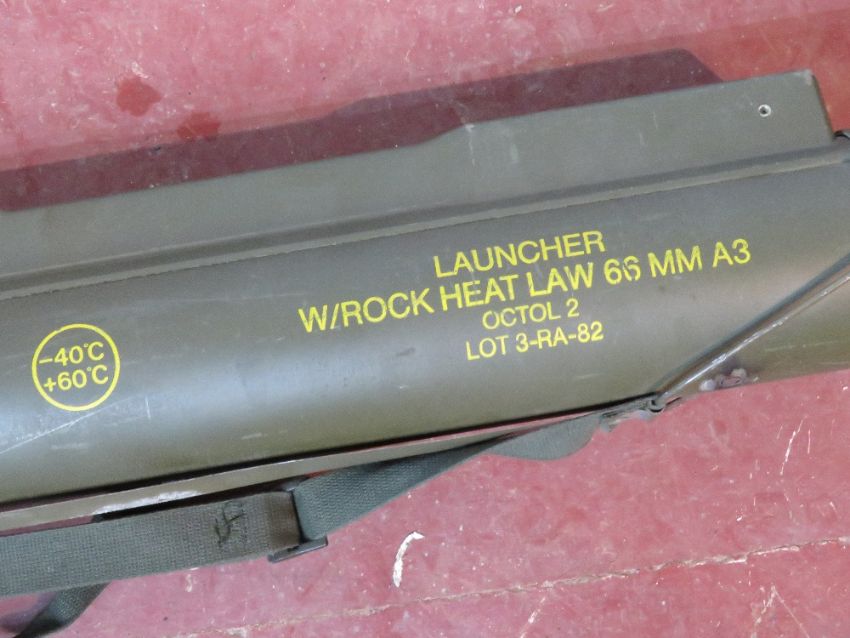 A deactivated M72 LAW 66mm rocket launcher. Opens and closes, with working parts. Sights are all intact with end cap and carry strap. With certificate.