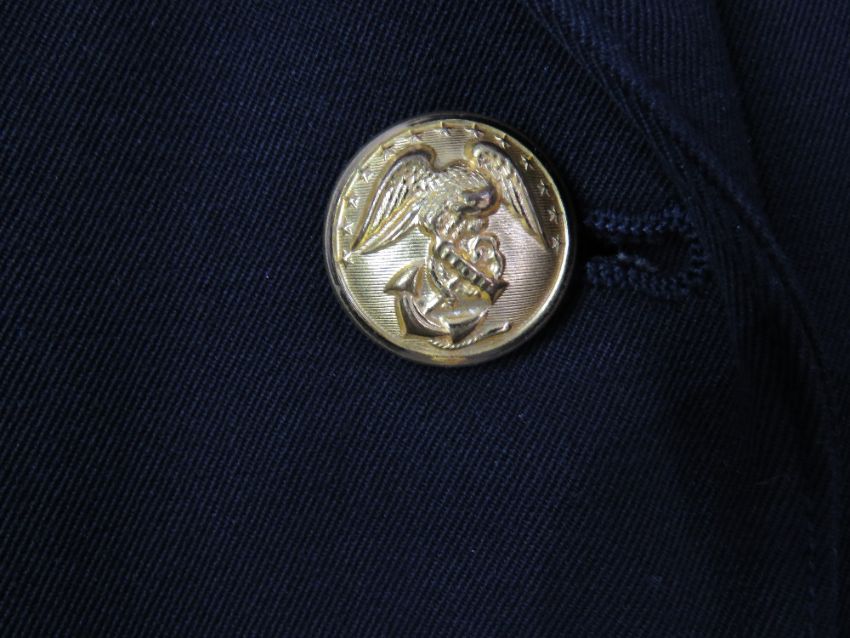 A US Marine Corp tunic and blue trousers, the trousers are a size W-30 and L-31 bearing date of 1957.