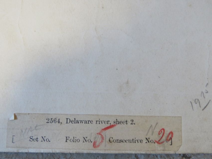 Navigational chart; engraved by J & C Walker, new edition published 18 June 1915, being United States East Coast Delaware River from Cohamsey to Philadelphia compiled from surveys of the United States Coast Survey 1882, measuring approx 102.5 x 69cm.