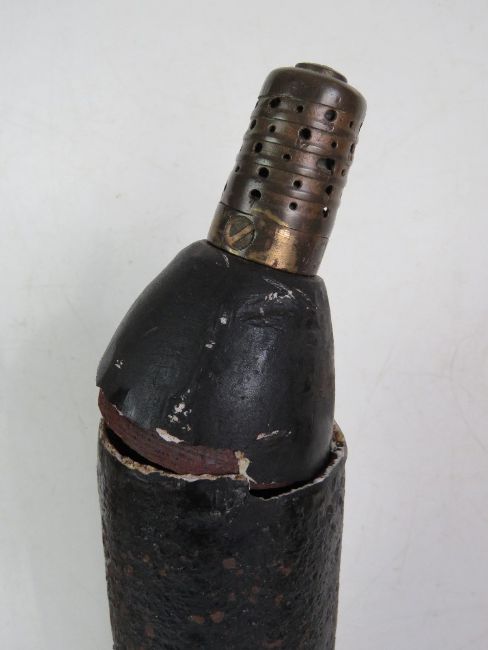 An inert WWI French 75mm shrapnel shell, date indistinct, shell further marked L344 14 P.