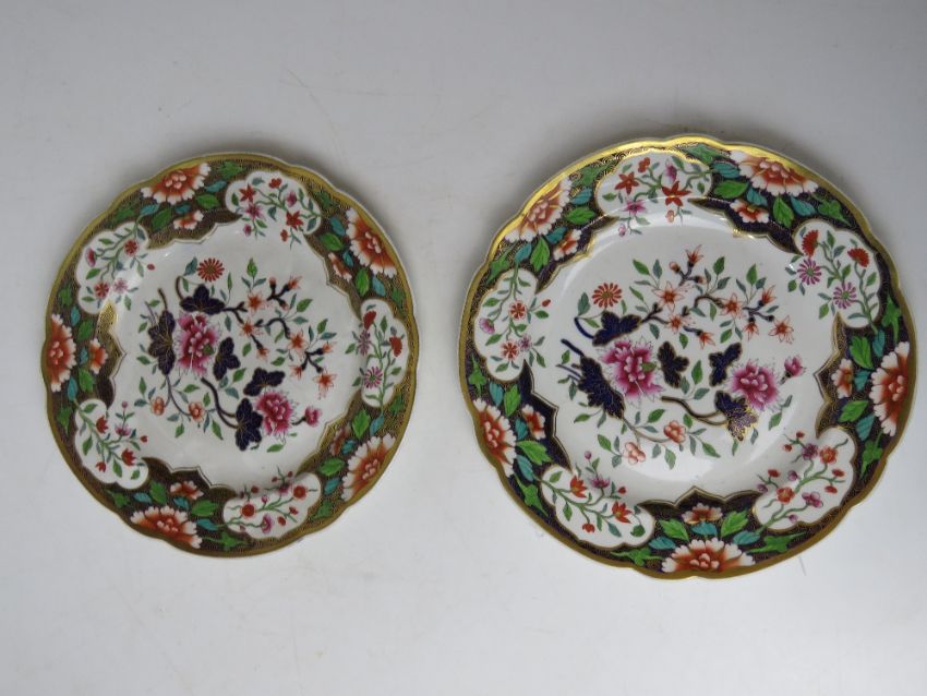 A pair of Spode plates having gilt and floral decoration upon a white ground, No 3071, each 25cm dia.