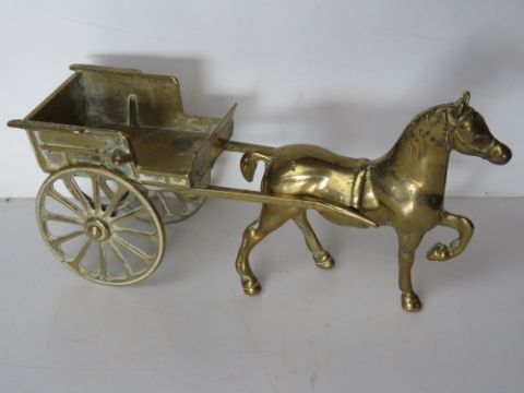 An articulated brass figurine of a horse and cart approx 27cm in length.