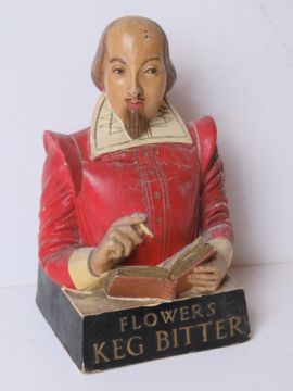 Breweriana; a mid century Flowers Keg Bitter Shakespear composite advertising figurine.