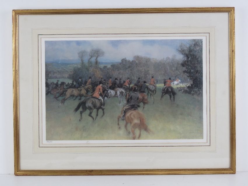A limited edition hunting print 245 of 500 'Gone Away' by Gilbert Holiday, 32 x 51cm.