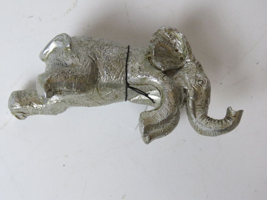 A silver painted elephant wine cooler decoration, as new with tag.