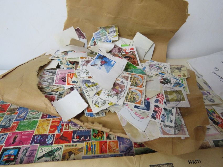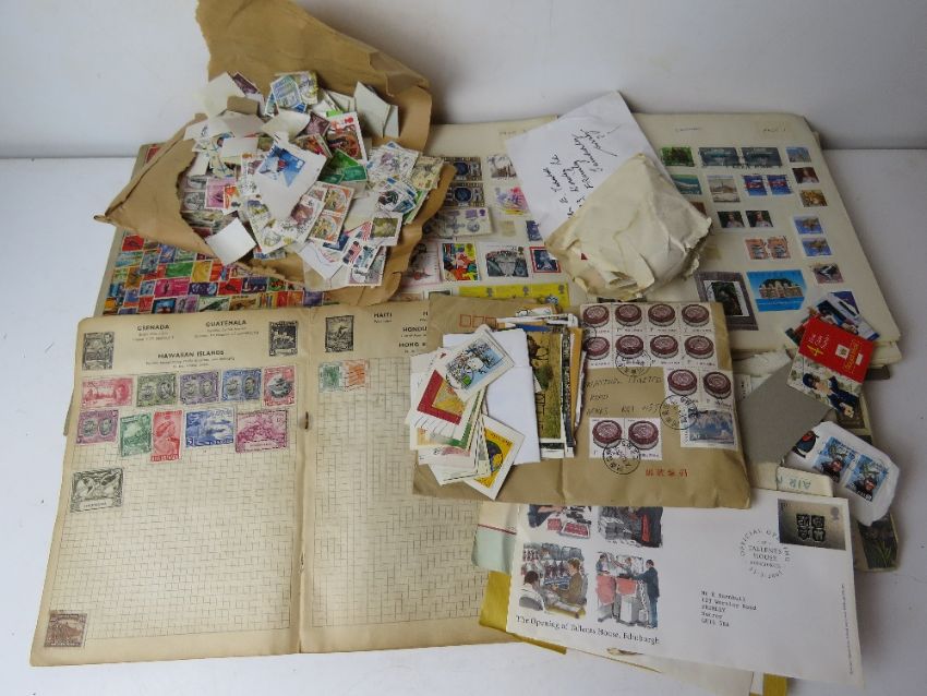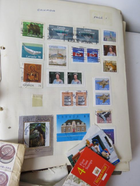 A quantity of assorted loose stamps together with some stuck down stamps and part used albums.